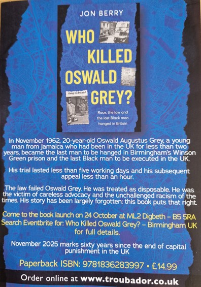 My latest book Who Killed Oswald Grey? will be released in September, just before Black History Month. It revisits the case I first exposed in Brutish Necessity in 2022 and tells the story of the last Black man hanged in Britain in 1962.